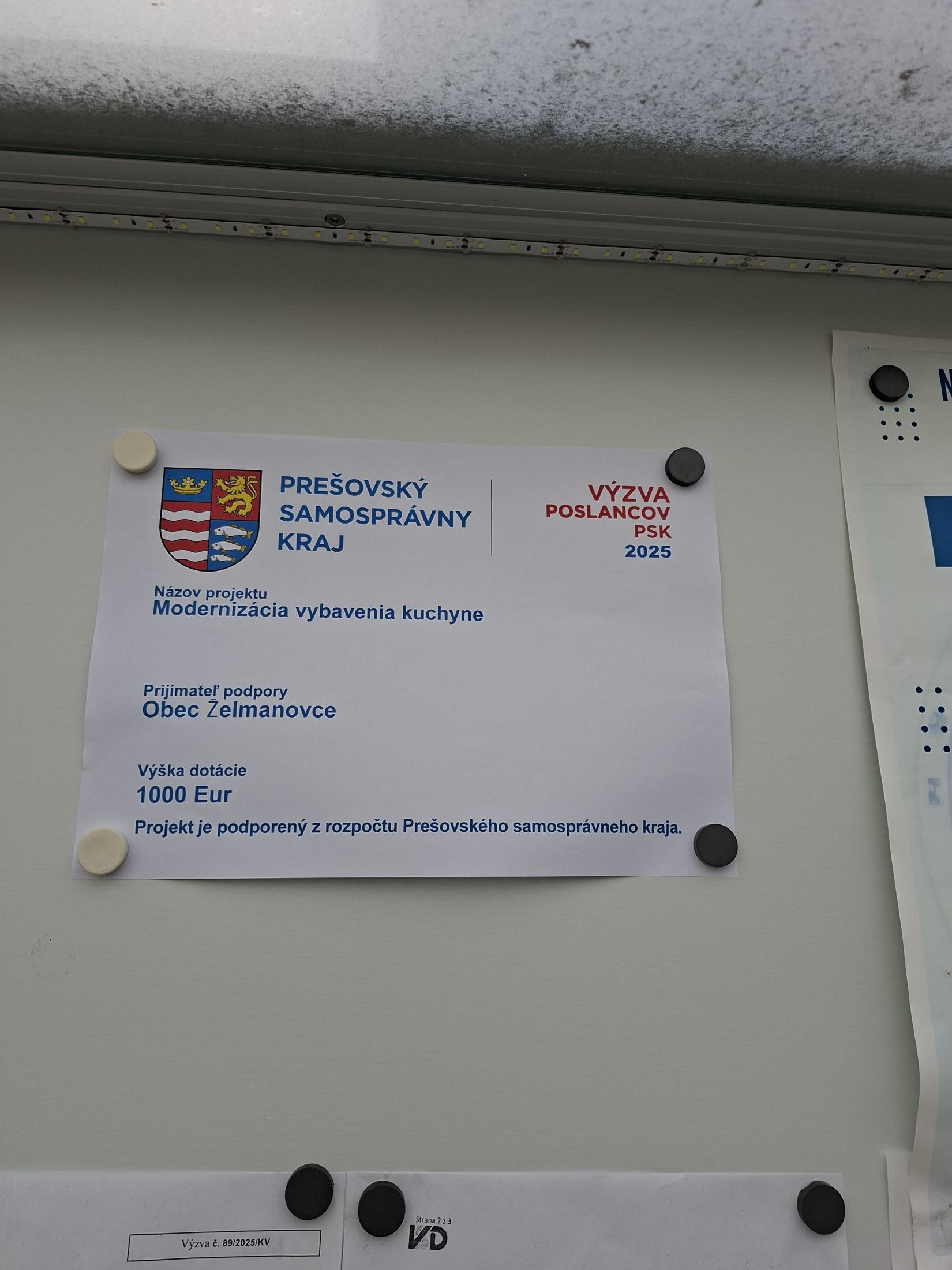 Prijímateľ podpory : Obec Želmanovce